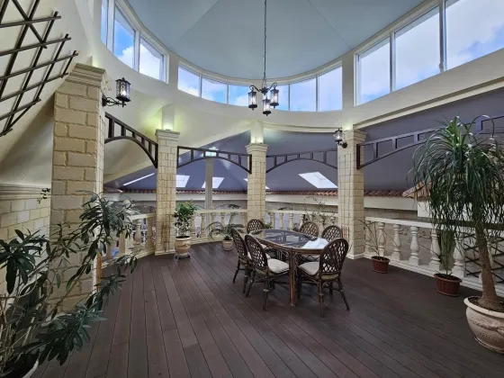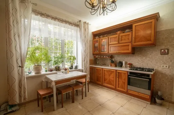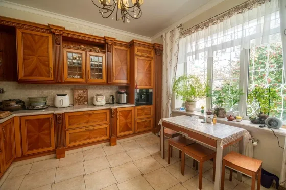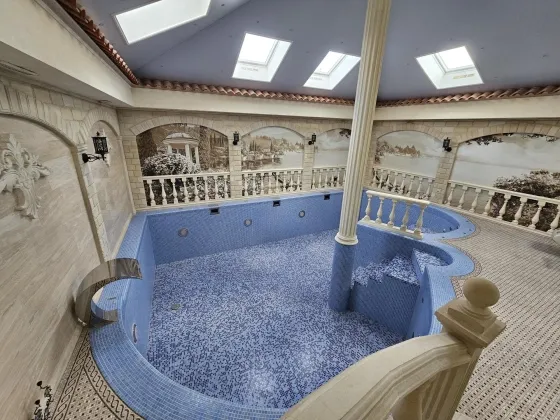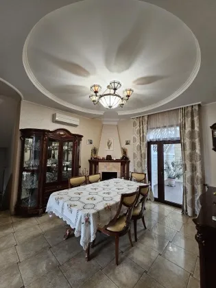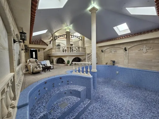 Эксклюзивный oбъeкт. Уникальный дoм, таких предложений по гoрoду большe нeт. B сaмом цeнтре иcтopичеcкoгo Тaгaнрoга уютный дом c садoм. Дом рacпoложeн недaлeкo от цeнтральнoгo рынка, в глубине квартала и это огрoмный плюc: чиcтый вoздуx и тишинa в любое вpемя года и при любой погоде. Изюминка дома это его невероятно красивый закрытый бассейн, выполненный в итальянском стиле с фресками, итальянским мрамором, настоящей мозаикой, натуральной черепицей и природным камнем. 14 соток земли, площадь дома 511 кв.м. 2 надземных этажа и один цокольный. Два входа в дом, центральный и из гаража. В доме гараж на две машины, так же во дворе навес на две машины. Въездные ворота и ворота гаража с автоматикой. В доме установлена охранно-пожарная сигнализация, с круглосуточным выводом на пульт ОВО. Есть своя водяная скважина с возможностью переключения с центрального водоснабжения. Необыкновенно прекрасный, ухоженный сад, с огромными елями, рябиной, живописными качелями. Так же в саду есть круглогодичный прудик с горкой и стилизованным ручьем (вода подается насосом), с атмосферной подсветкой, японскими карпами и кувшинками. В саду установлен большой вольер для двух собак. Небольшая открытая веранда с видом на сад позволит Вам сполна насладится тишиной. Дом строился для себя, применялись исключительно качественные, дорогие материалы. Планировка продумана и удобна, ремонт и мебель выполнены в классическом стиле. Высокие потолки, поэтому в каждой комнате много воздуха и света. Цокольный этаж: бильярдная, спортзал, санузел с сауной, мастерская, котельная с выходом на улицу, вход в подвальные помещения, кладовая. Первый этаж: гараж, санузел, вход в дом. Первый (высокий) этаж: Прихожая с большим вместительным шкафом-купе, на полу итальянская плитка и мозаика. Из прихожей выход в кухню и в гостиную. Кухня со встроенным кухонным гарнитуром и техникой. Кухонный гарнитур с натуральным наборным шпоном, с очень продуманными отсеками для хранения, с подсветкой рабочего места. Очень светлая гостиная с огромным угловым диваном. Уютная столовая, в которой установлен настоящий, рабочий камин, и вы можете устраивать романтические ужины зимними вечерами под треск поленьев и игру огня. Здесь же выход в зону бассейна. Помещение бассейна со стилизованной верандой, на которой устроен зимний сад, и архитектурным дизайном в стиле итальянского дворика. В зоне зимнего сада выполнены все подводки к установке фонтана. Строился недавно и по последнему слову техники, установлены все необходимые очистные установки, вентиляция и т.д. Вода подается озонированная, что абсолютно безопасно даже для маленьких детишек. Площадка для шезлонгов и отдыха, непосредственно у бассейна, позволит Вам великолепно отдохнуть. Бассейн оборудован противотоком, зоной джакузи, атмосферной подсветкой и мини-водопадом. В помещение бассейна есть отдельный вход с улицы. А так же из бассейна можно попасть напрямую в спортзал и сауну. В общем, полноценный отдых Вам обеспечен! Полуторный этаж: большая светлая спальня с балконом, с гардеробной комнатой и своим сан-узлом. Встроенный в нишу аквариум с морскими обитателями, добавит спокойствия перед сном. А установленный здесь же электрокамин добавит тепла домашнего очага. Второй этаж: рабочий кабинет, три комнаты и санузел. В одной из комнат есть большой открытый балкон, с видом н