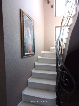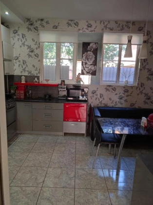 Двухэтажный дом 2014 года постройки из автоклавного газобетона Henkel. Дом общей площадью 114,4кв.м. 1-й этаж: просторная гостинная 21кв.м.; большая светлая кухня 16кв.м. с дорогим кухонным гарнитуром из ясеня и столешницей из натурального гранита; гардеробная комната 6кв.м.; санузел декорирован кафелем и оснащен дорогой сантехникой; коридор со встроенным шкафом-купе; сплит-система, м/п она, пол ламинат. 2-й этаж: спальня 12,7кв.м., детская 30кв.м., ванная комната 10кв.м. Дом облицован дагестанским камнем. Отопление на 1-м этаже выполнен теплый пол, на 2-м регистры-конвекторы. Лестница бетонная, обшита сверху ясенем с кованными перилами. В доме большой чердак.