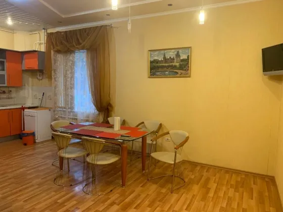 О квартире: шикарная, просторная квартира с высокими потолками, площадь 128 кв. м. 4 комнаты: зал 36 кв. м., спальни 22, 20, 15 кв. м, кухня -столовая - 27 кв. м. Высота потолков 3,5 м. Индивидуальное отопление. В квартире так же имеется камин. Квартира занимает первый этаж и окна расположены на обе стороны. Квартира меблированная,