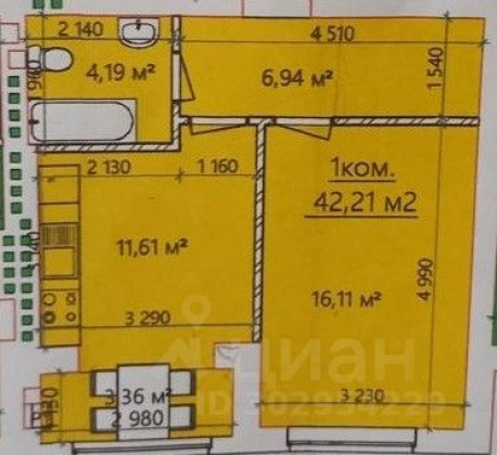 | Площадь, кв.м. | 42.2 |